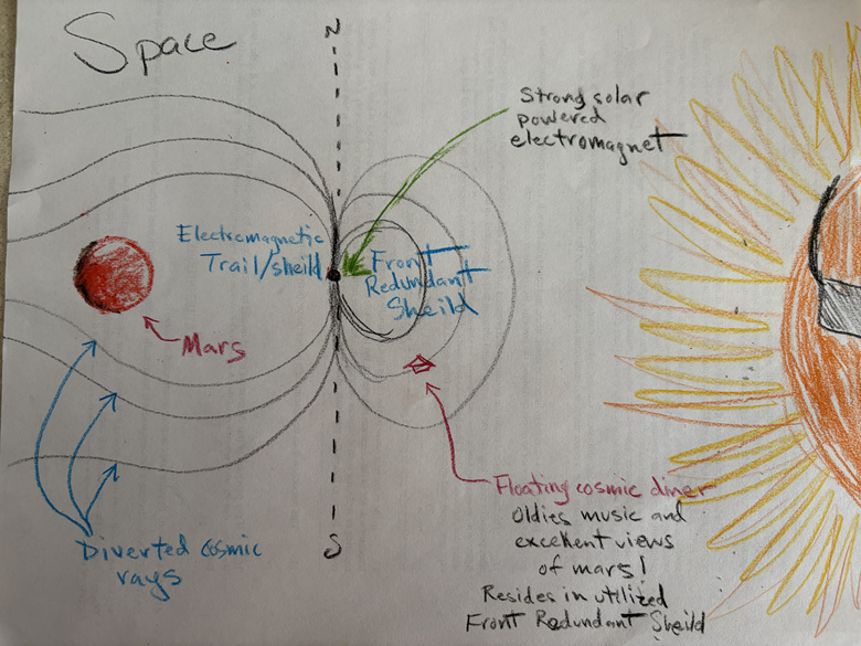 One of the apparent challenges of space travel is solar radiation. According to exhaustive research, high energy particle bombardment and UV radiation can cause degradation to the exterior of the spacecraft such as worn paint, loose bolts and unsafe conditions for reentry. Among other concerns is the potential for damaged electronics and an unsafe condition for astronauts. Conventional wisdom would place focus on beefing up exterior panels, building impenetrable surfaces, and installation of a few more rivets to seal gaps and shield the shuttles sensitive regions from these cosmic irritants. 100 SPF just won't do. I wanted to propose an alternative solution that draws from well-studied divine creation... Earths electromagnetic field protects us... why not design an electromagnetic field to protect the spacecraft...
