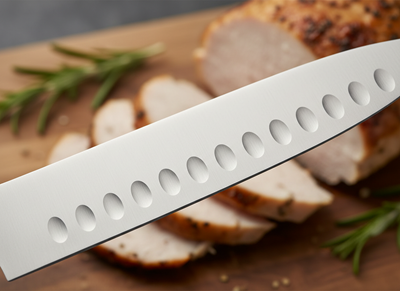 Amusing ideas aside... Let’s get serious considering design of the actual heat shield on the surface of the starship... I started thinking about Granton knives. According to Google A.I. the dimples on these knives create air pockets to prevent food from sticking, thus reducing friction and allowing for cleaner slicing of most items such as potatoes, cheese or meat, by disrupting the surface tension. These knives also known as Santoku or brisket knives, reduce drag making cutting easier.